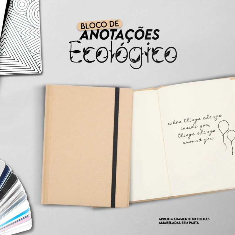 A personalização do caderno ecológico é essencial para garantir que ele se torne um verdadeiro instrumento de comunicação da marca.