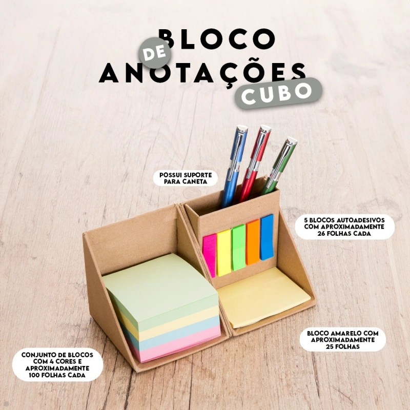 Além disso, os blocos personalizados são excelentes ferramentas de marketing, podendo ser distribuídos como brindes em eventos corporativos, feiras e ações promocionais, contribuindo para a divulgação da marca.