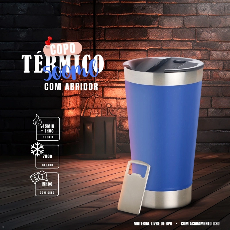 - Funcionalidade: Além da parte promocional, o copo térmico para cerveja mantém a bebida gelada por mais tempo, proporcionando uma experiência sensorial mais agradável para o consumidor;