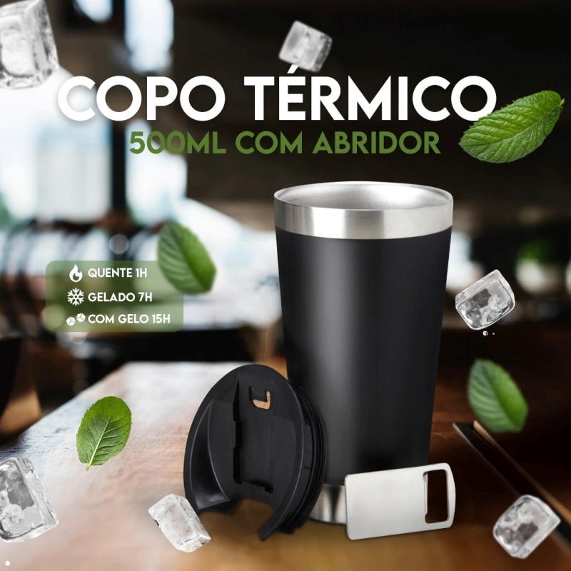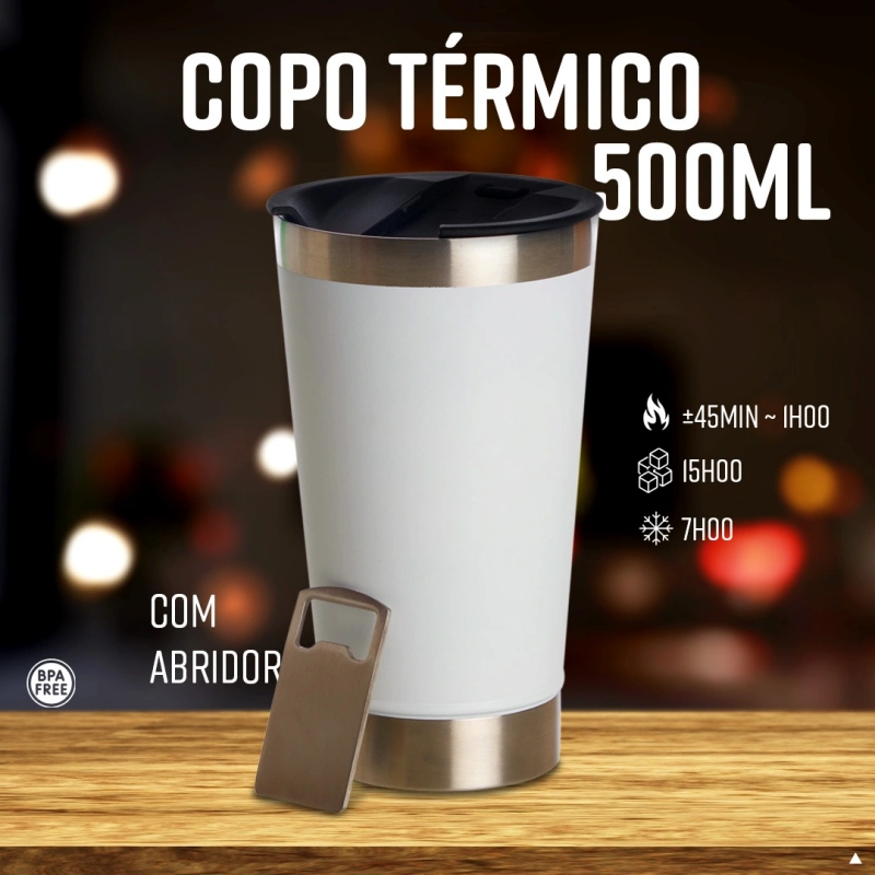 Além de ser um brinde útil e durável, o copo térmico mantém a bebida na temperatura desejada por mais tempo, proporcionando uma experiência satisfatória ao usuário.